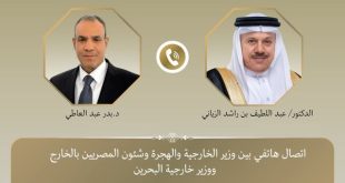 جرى اتصال هاتفي بين د. بدر عبد العاطي وزير الخارجية والهجرة وشئون المصريين بالخارج، والدكتور عبد اللطيف الزياني وزير خارجية مملكة البحرين الشقيقة يوم السبت ١٠ يناير. أكد الوزيران خلال الاتصال الحرص المشترك على مواصلة العمل لتعزيز العلاقات السياسية والاقتصادية والاستثمارية بين البلدين، وتكثيف تبادل الزيارات رفيعة المستوى، بما يسهم …