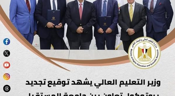 شهد الدكتور أيمن عاشور وزير التعليم العالي والبحث العلمي، توقيع تجديد بروتوكول تعاون بين جامعة المستقبل وجامعة كورك الأيرلندية، وبموجب بروتوكول التعاون، سيتم استمرار منح درجات علمية مزدوجة لطلاب كلية الصيدلة بمرحلتي البكالوريوس والدراسات العليا، بالإضافة إلى تكثيف برامج التبادل الطلابي وأعضاء هيئة التدريس، وزيادة التبادل العلمي، فضلًا عن تعزيز التعاون المشترك في المجالات الأكاديمية والعلمية والبحثية بين الجامعتين، وأشار الوزير إلى الرؤية الشاملة للدولة بأن تكون مصر منصة تعليمية جاذبة، ووجهة للراغبين في الحصول على خدمات تعليمية متميزة في المنطقة العربية والقارة الإفريقية والشرق الأوسط.