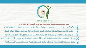 كما واصلت الهيئة دعم انسيابية حركة تداول السلع الغذائية و عدم تكدسها بالموانئ المصرية، من خلال إصدار 1366 طلب نقل وتخزين للرسائل الغذائية الواردة، إلى جانب التحفظ على 430 رسالة غذائية واردة غير مستوفاة لاشتراطات سلامة الغذاء، وذلك في إطار حرص الهيئة على إحكام منظومة الواردات الغذائية وحماية صحة المستهلك.