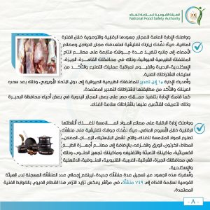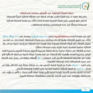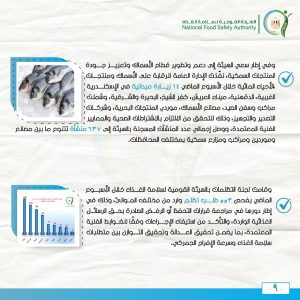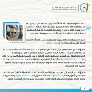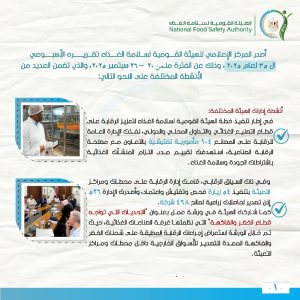 وتم توعية أصحاب المنشآت الغذائية بتحسين التدابير الخاصة بسلامة الغذاء، والتنبيه بضرورة التسجيل بالهيئة.