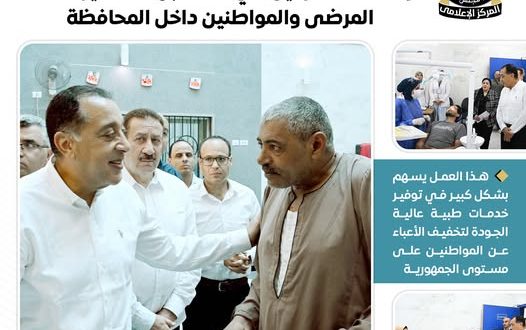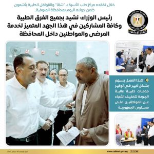 رئيس الوزراء: نشيد بجميع الفرق الطبية وكافة المشاركين في هذا الجهد المتميز لخدمة المرضى والمواطنين داخل المحافظة