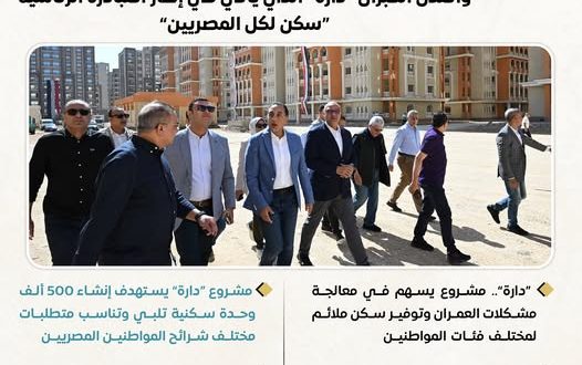 رئيس الوزراء: نؤكد أهمية مشروع تطوير عواصم المحافظات والمدن الكبرى “دارة” الذي يأتي في إطار المبادرة الرئاسية “سكن لكل المصريين”