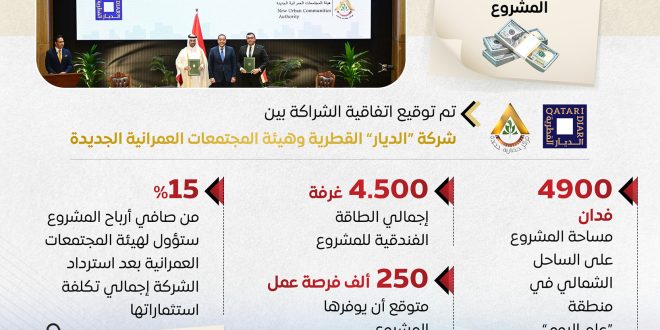 شراكة بين الديار القطرية وهيئة المجتمعات العمرانية الجديدة لتطوير منطقة سملا علم الروم بمطروح بإجمالي استثمارات 29.7 مليار دولار. ويشمل المشروع مجتمعًا عمرانيًا متكاملًا يضم فنادق، ومساكن، ومراكز تجارية، ومؤسسات تعليمية وطبية، مع توفير 250 ألف فرصة عمل جديدة، وذلك في إطار رؤية مصر 2030 والمخطط القومي للتنمية العمرانية لجعل الساحل الشمالي المصري قادرًا على استيعاب أكثر من 17 مليون نسمة.