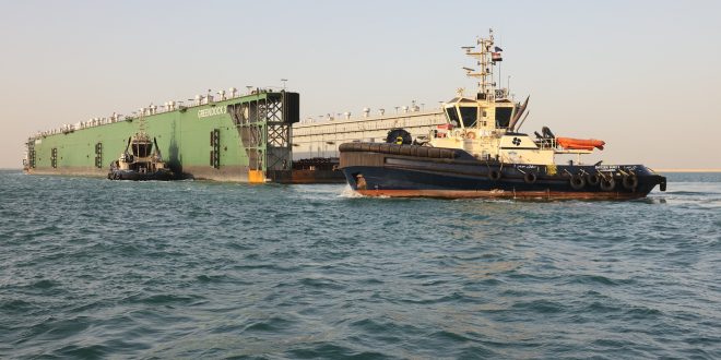 عملية عبور الحوض العائم مقطوراً عبر القناة استغرقت 24 ساعة وتطلبت اتخاذ تدابير ملاحية خاصة